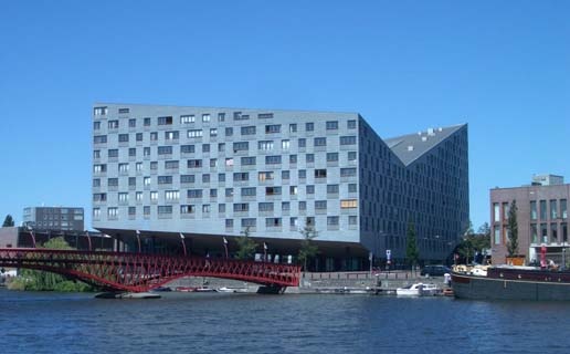The above picture is from Netherlands, “The block contains a total of 214 apartments, commercial space, a semi-public interior courtyard and an underground car park. The striking sculptural form with its angled top and underbelly ensures that all the dwellings and the courtyard garden enjoy sufficient sunlight, fresh air and open views and generates the requisite variation in housing types.”