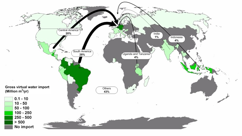 Sample this case:The picture shows the source of coffee/tea for the Dutch. It illustrates the net water import into your drink.