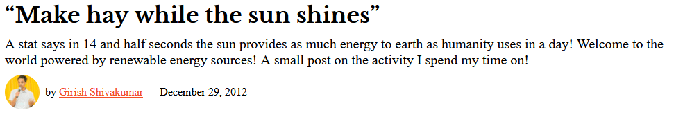 Some of the posts that I wrote in the first couple of years was just to keep the momentum going, a habit formation cycle. During this period I was also trying to define my own ‘niche’ in terms of writing styles or topics. For all the early bloggers, getting into contests was something that fascinated me. I did write a few of them for sustainability contests and in fact got shortlisted for a few of them too.